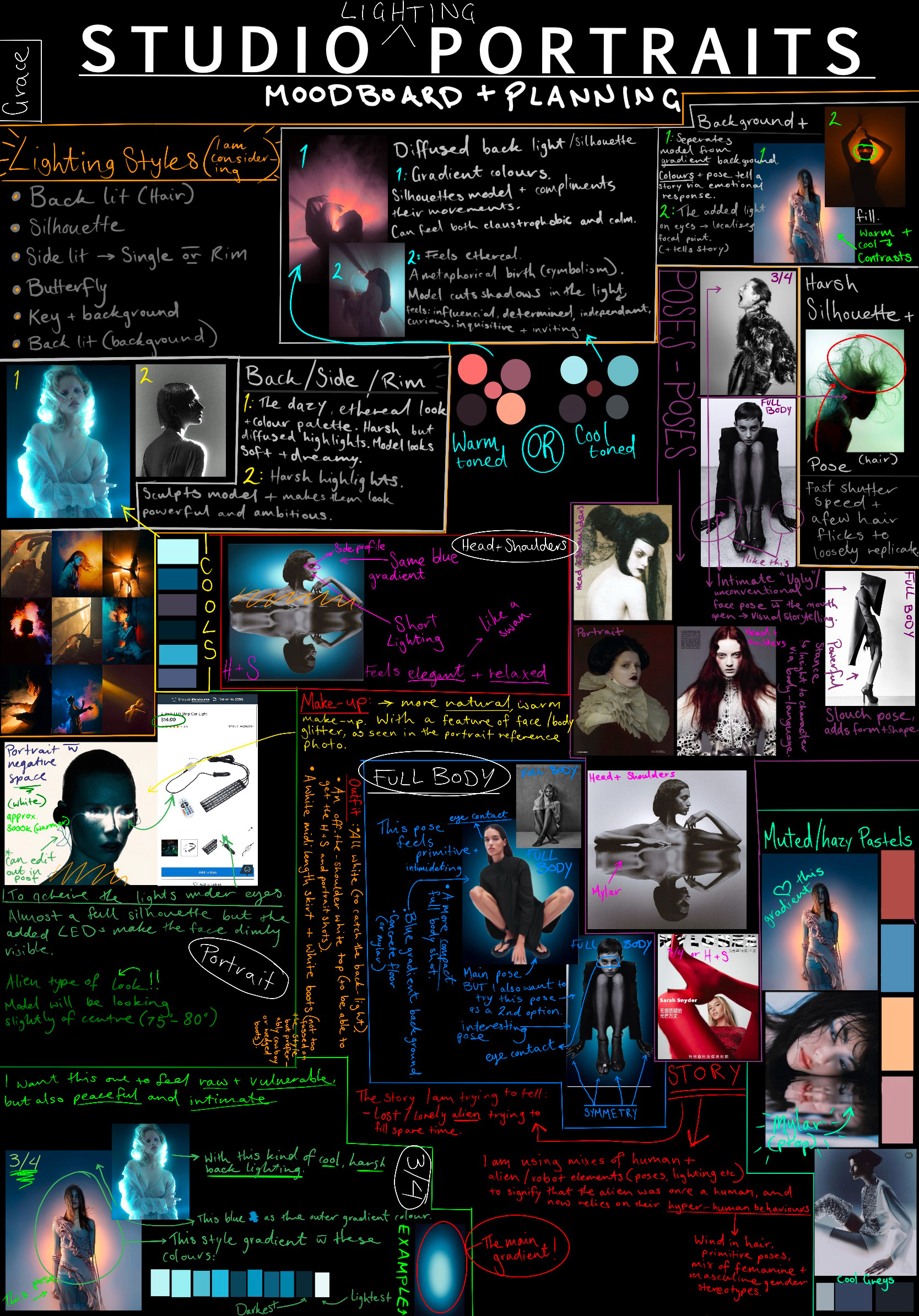 Below are some supporting documents including lighting plans, mood boards, exhibition plans, design concepts and an artists plaque from my class's exhibition.